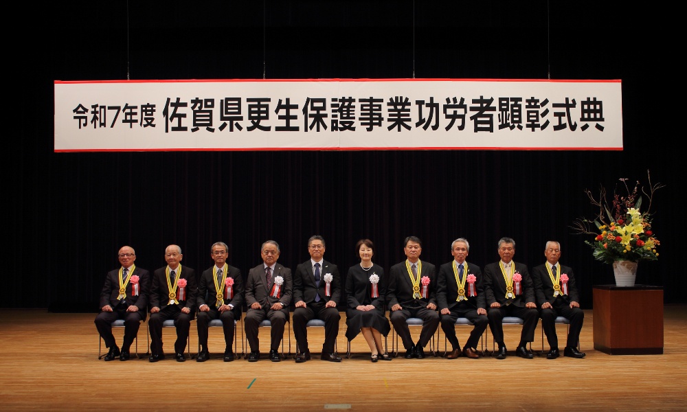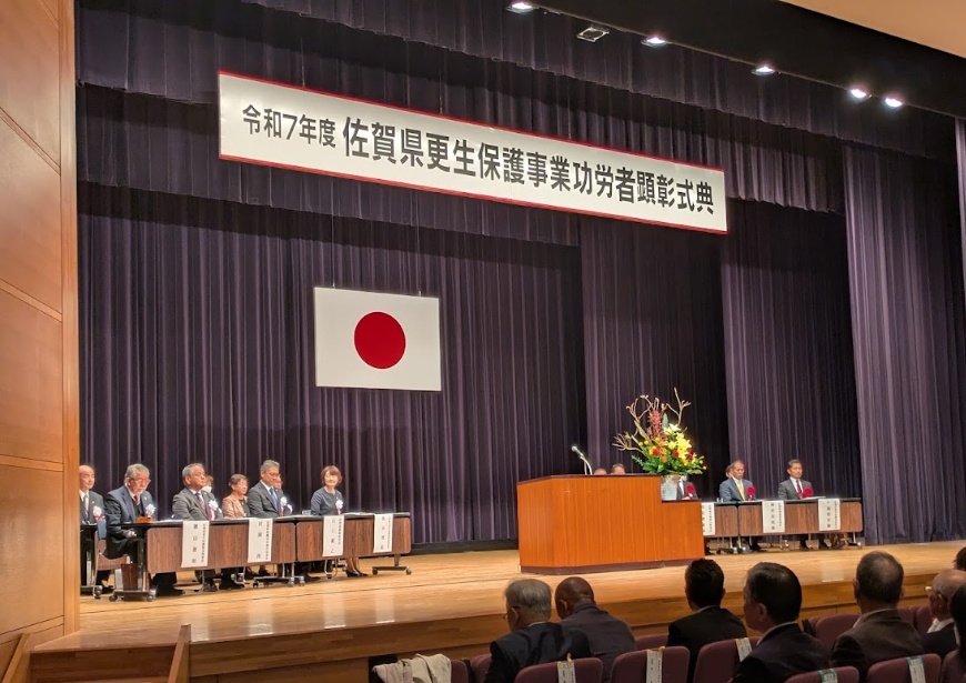 令和7年度「佐賀県更生保護事業功労者顕彰式典」が11月14日(金)に佐賀市立東与賀文化ホール「ふれあい館」にて開催されました。 功労のあった更生保護関係者及び家族功労者、ならびに民間協力者等に対する表彰状や感謝状の伝達が行われました。 保護司をはじめ更生保護法人役職員、更生保護女性会員、BBS会員、協力雇用主、家族功労者、民間協力者等の受彰者やその関係者、参列者を合わせ250名ほどが参加され盛大に執り行われました。